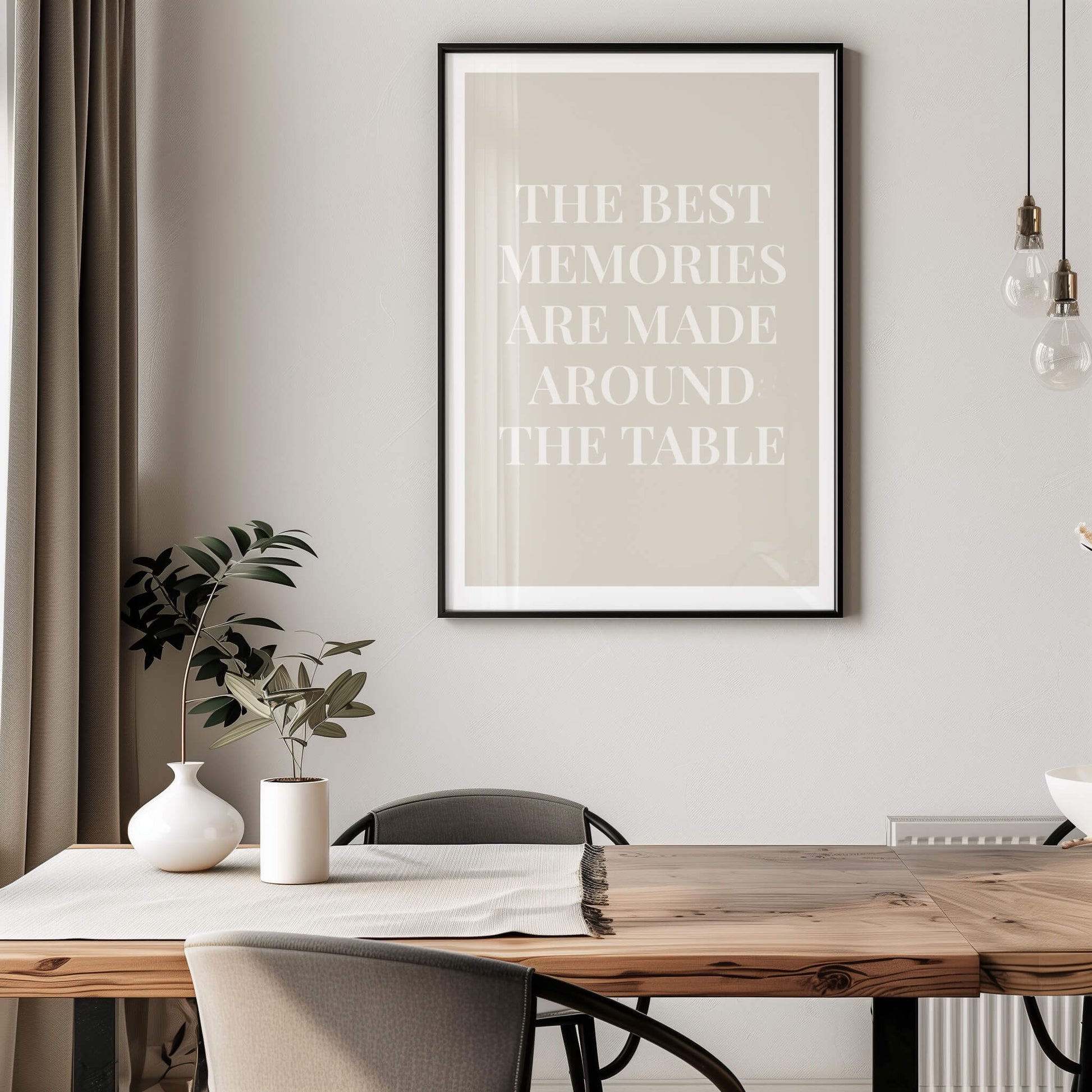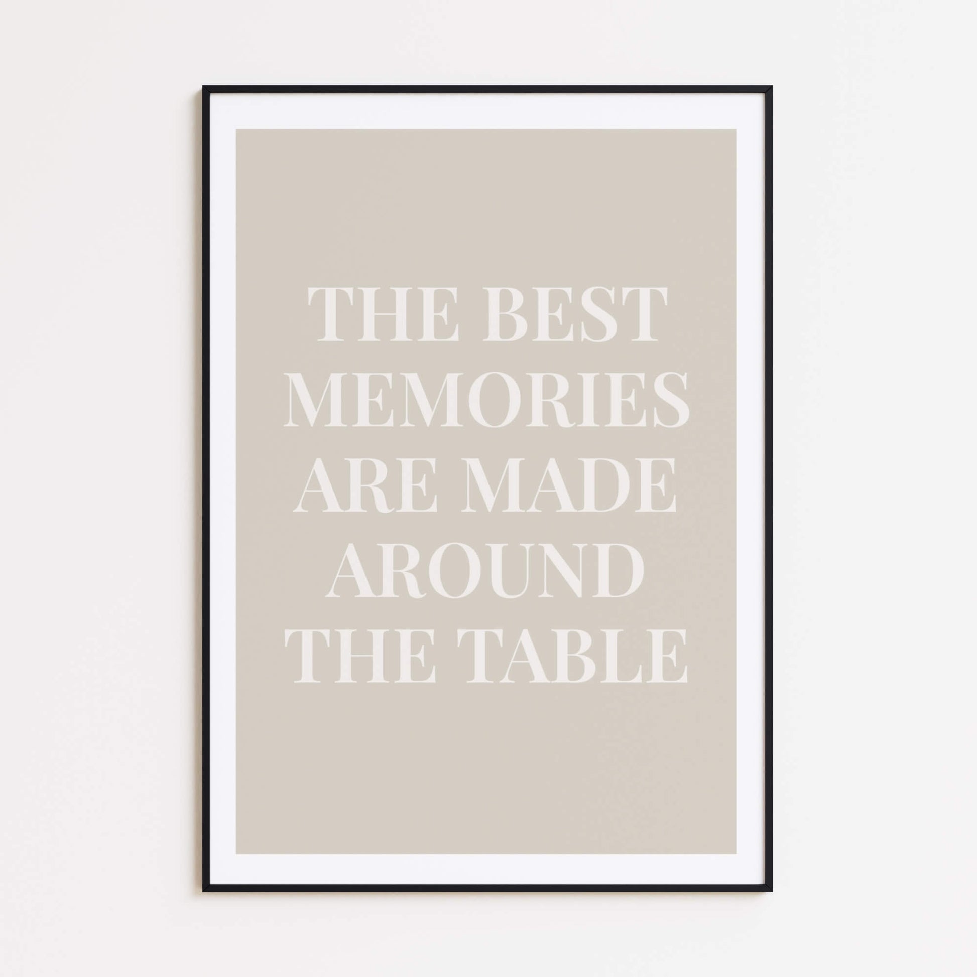 Mit dem herzlichen Zitat „The best memories are made around the table“ feiert dieses Poster Zusammensein und gemeinsame Momente. In einer edlen Serifenschrift auf sanftem Beige eignet es sich perfekt für Küchen, Esszimmer und gemütliche Treffpunkte. Verleihen Sie Ihrer Einrichtung mit diesem warmen und einladenden Druck einen bedeutungsvollen, heimeligen Charme.