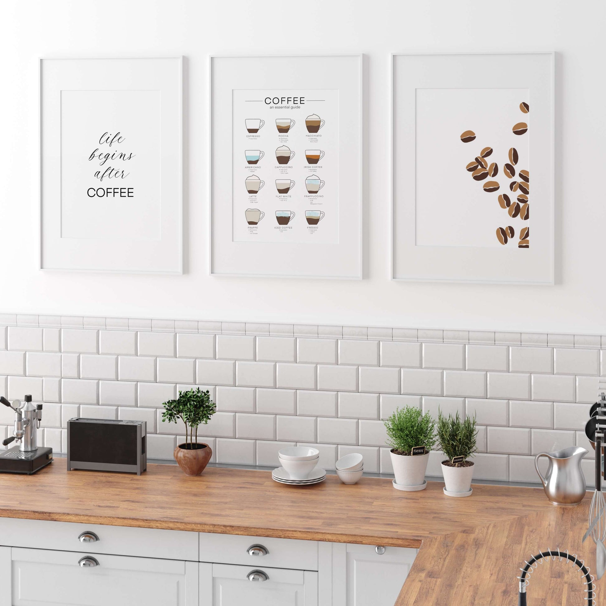 Dieses druckbare Posterset zelebriert das Kaffeeritual mit drei einzigartigen Drucken: einem eleganten Zitat „Life Begins After Coffee“, einem illustrierten Kaffeeführer mit beliebten Sorten von Espresso bis Frappuccino und einem minimalistischen Design mit herabstürzenden Kaffeebohnen. Ideal für Küchen, Frühstücksecken oder Home-Cafés – diese Drucke verleihen Ihrer Einrichtung Wärme und Stil.