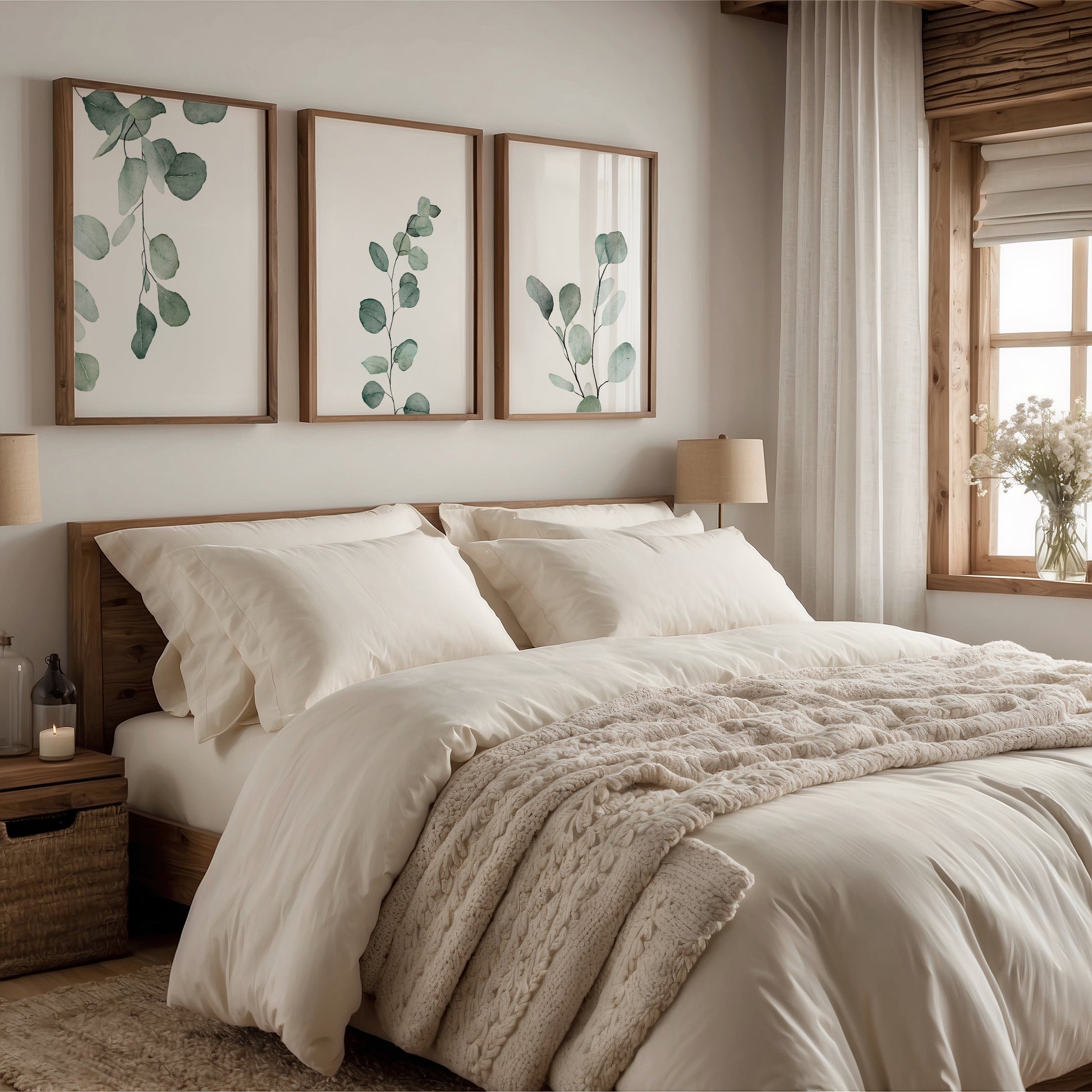 Dieses Set aus drei Eukalyptus-Postern zeigt zarte Aquarellillustrationen in sanften Grüntönen auf hellem Hintergrund. Dieses Trio schafft eine harmonische und beruhigende Atmosphäre in jedem Raum und eignet sich ideal für botanische oder minimalistische Einrichtungsstile. Ordnen Sie sie zusammen für eine Galeriewand an oder stellen Sie sie einzeln für einen subtilen Hauch von Natur aus.