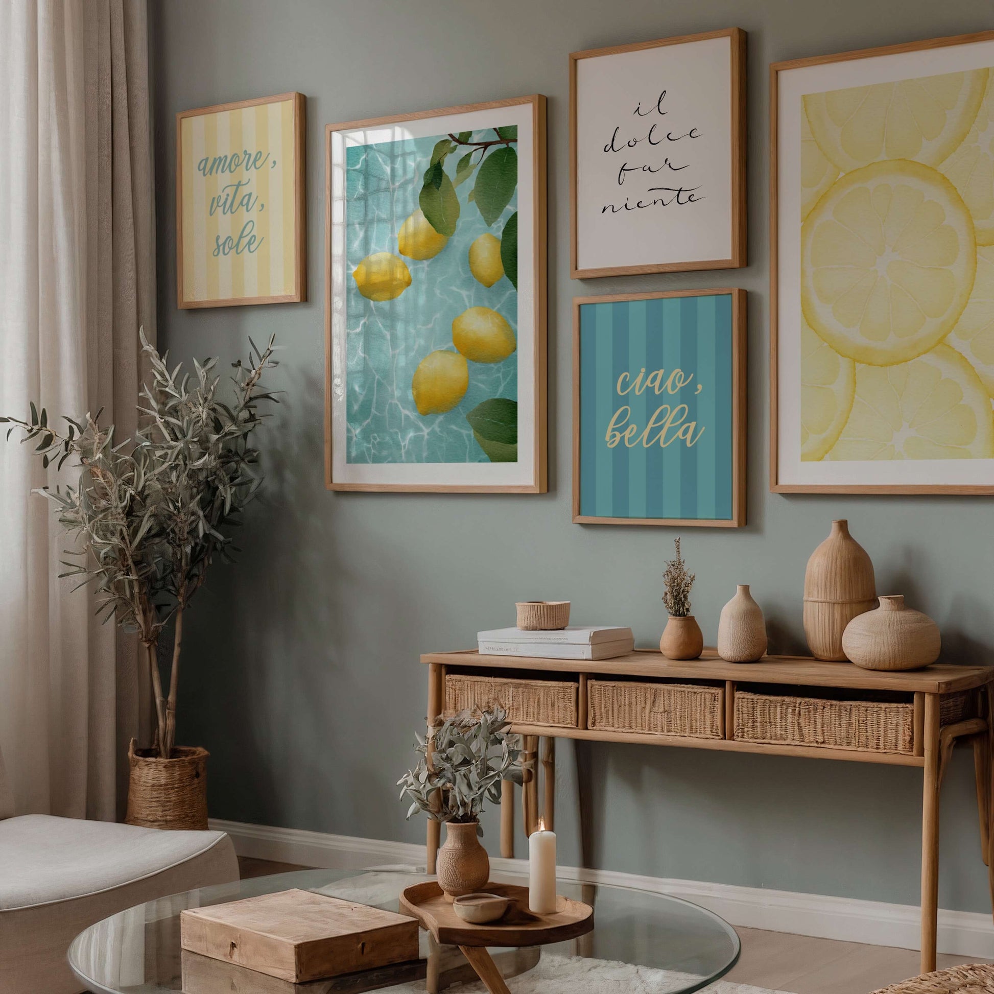 Inspiriert von sonnigen Terrassen und Zitrusbäumen ist diese Bilderwand eine frische Ode...