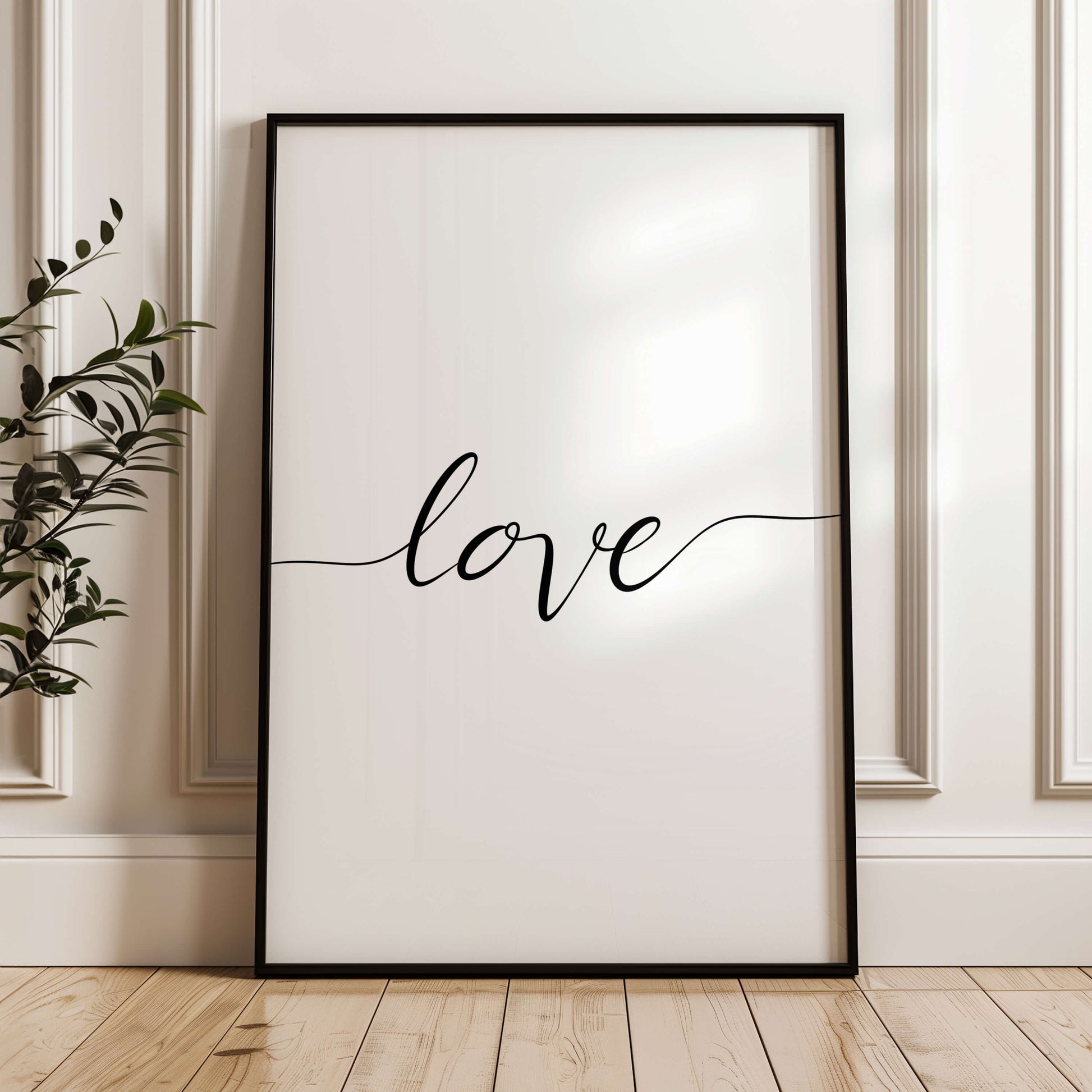 Dieses druckbare Poster zeigt das Wort „love“ in eleganter Schrift, die anmutig über das Design fließt. Minimalistisch und doch bedeutungsvoll, verleiht es Wärme und zeitlosen Charme und eignet sich perfekt für Schlafzimmer, Wohnzimmer oder als herzliches Geschenk.