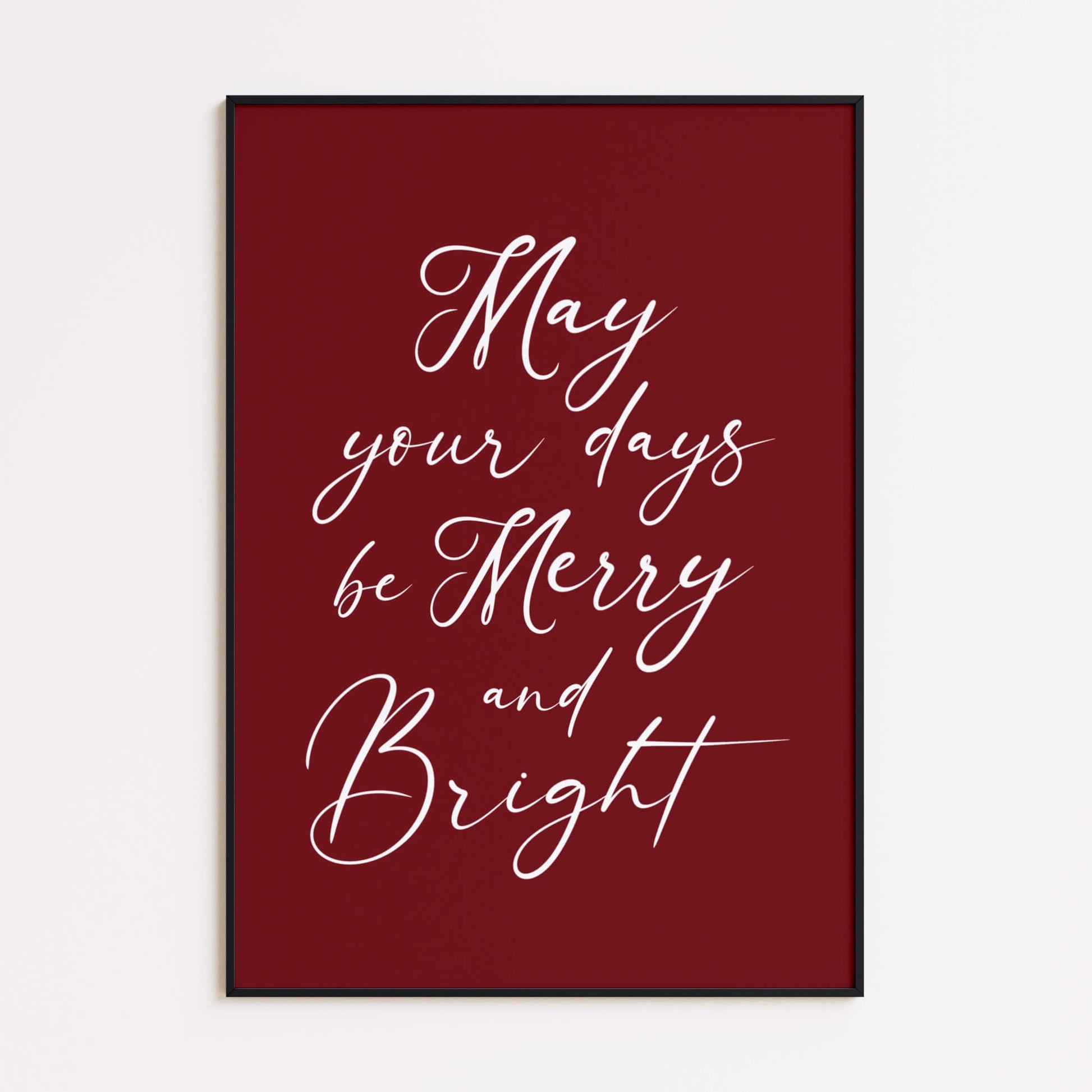 This elegant Christmas poster with the phrase “May your days be Merry and Bright” adds a touch of festive joy and classic elegance to your decor. Ideal as seasonal wall art to bring a cozy and cheerful atmosphere to living rooms, offices, or entryways.
