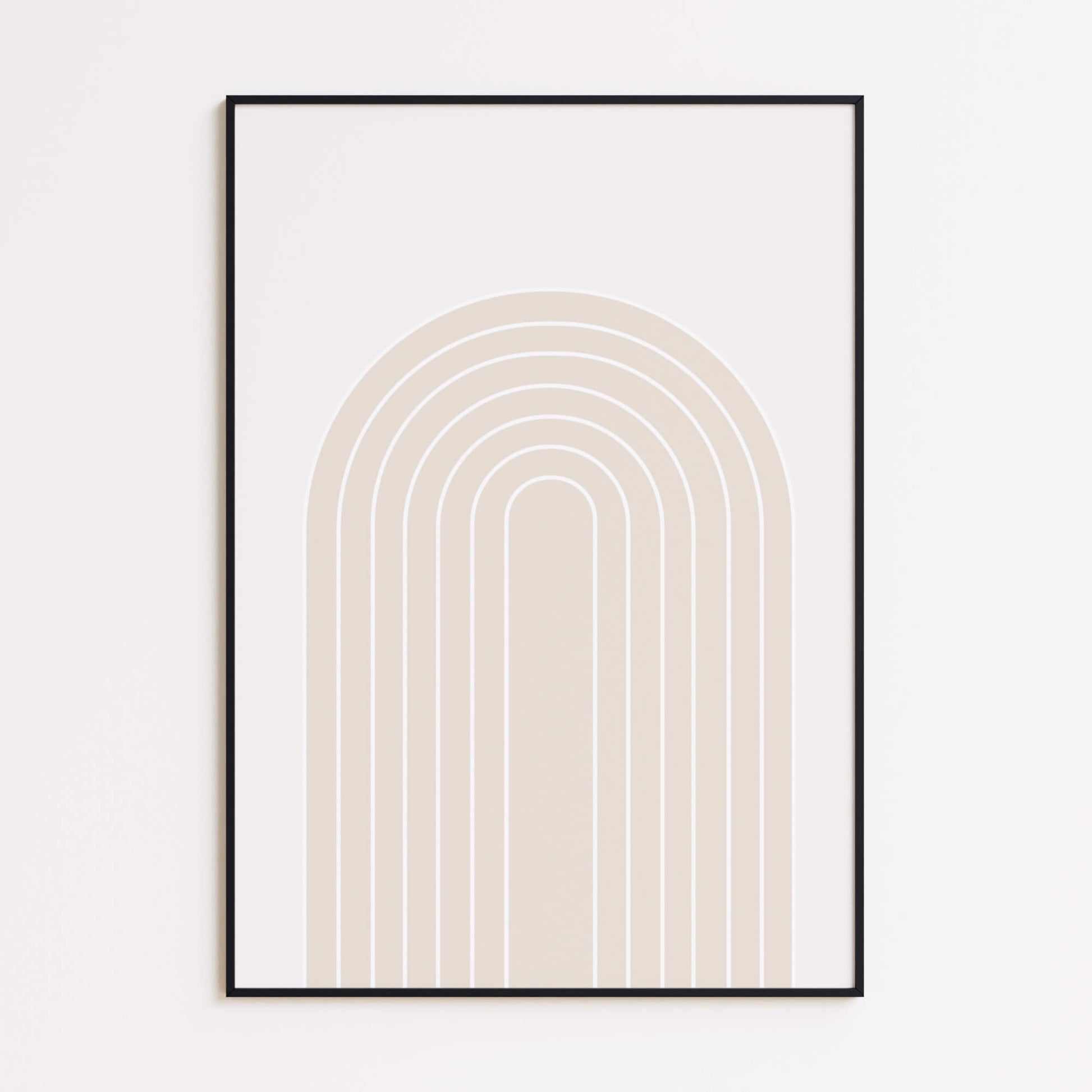 Dieses druckbare Poster zeigt ein minimalistisches Bogendesign in sanften Beigetönen auf hellem Hintergrund. Die sanften, fließenden Linien vermitteln ein Gefühl von Ruhe und Ordnung und machen es zur perfekten Ergänzung für moderne, skandinavische oder minimalistische Interieurs. Verleihen Sie Ihrem Raum einen Hauch von ruhiger Eleganz.