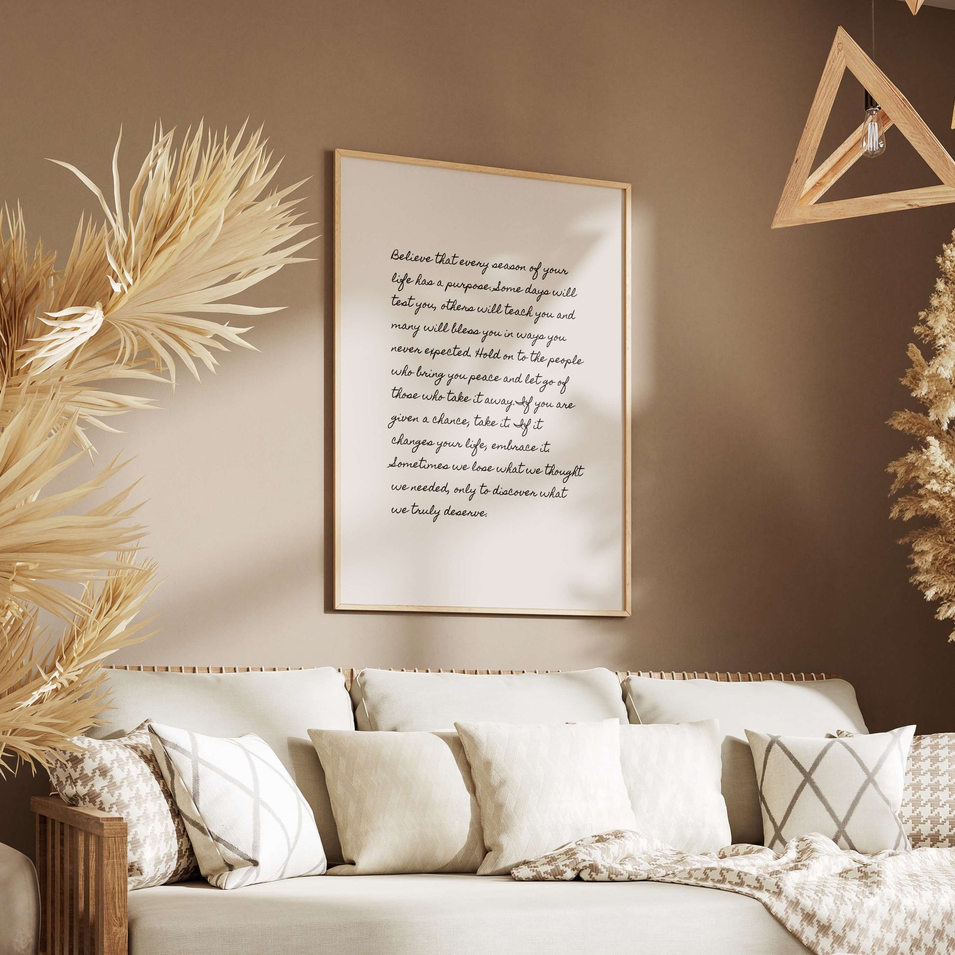 Minimalistische Zitatdrucke in warmen, neutralen Tönen bringen Ruhe und positive Stimmung in...