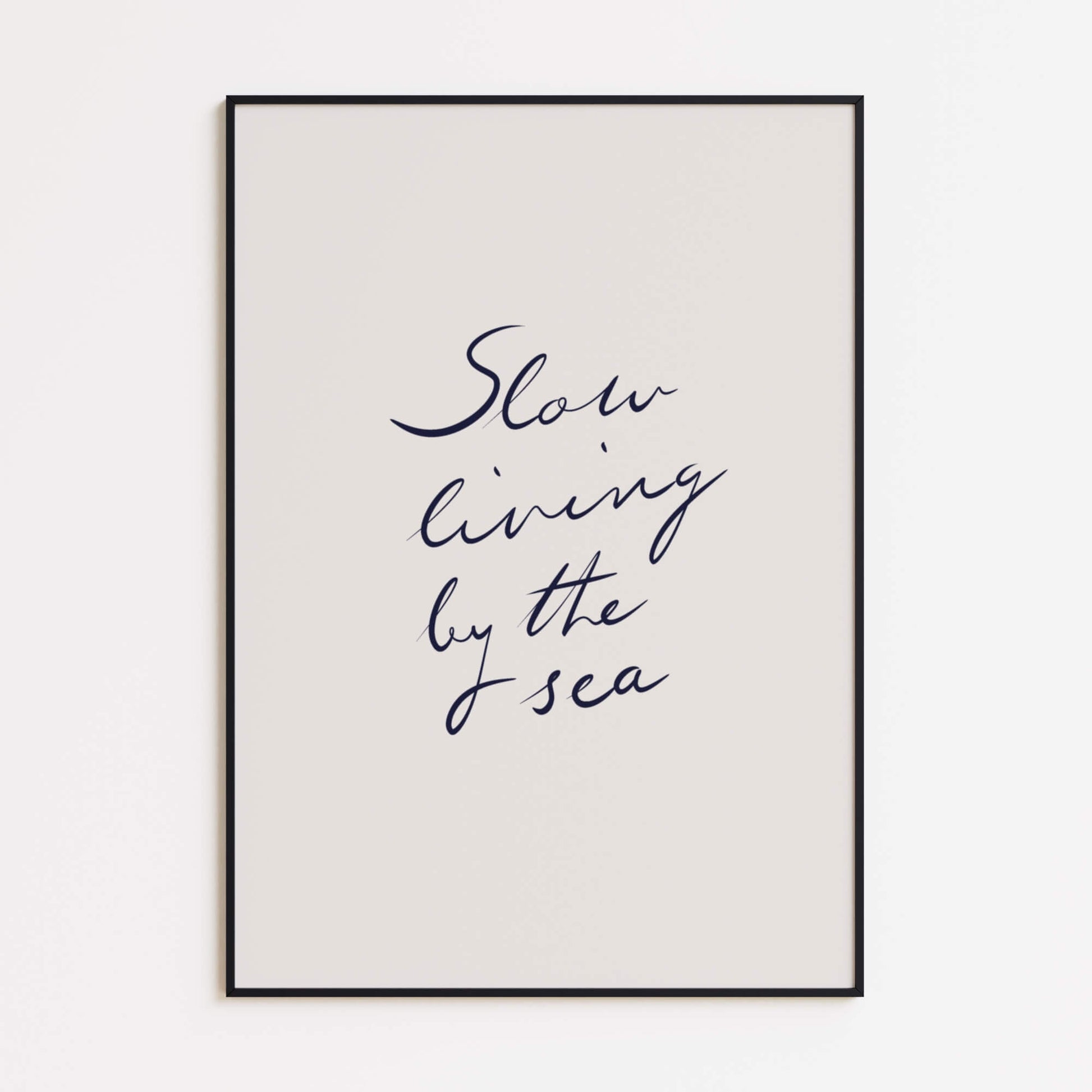 Dieses druckbare Kunstwerk fängt die Essenz der Ruhe mit dem handgeschriebenen Satz „Slow living by the sea“ ein. Die elegante Kalligrafie und der sanfte Hintergrund erzeugen eine friedliche Küstenstimmung – perfekt für einen achtsamen, entspannten Raum. Eine schöne Erinnerung daran, die einfachen Freuden des Lebens zu genießen.